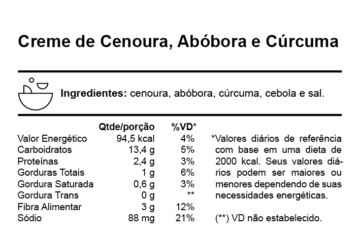 Mistura vibrante de vegetais e cúrcuma. Um creme funcional com ação anti-inflamatória e sabor equilibrado.