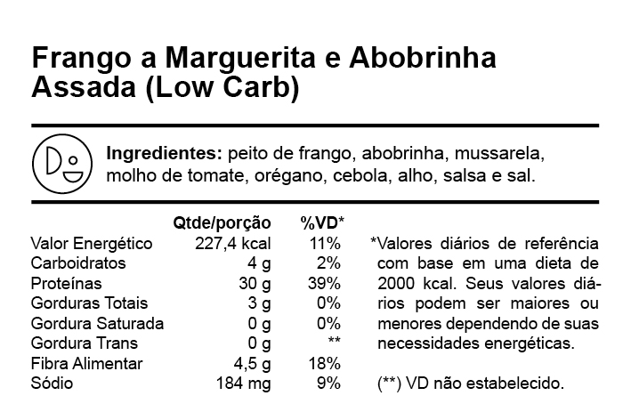 Versão low carb do nosso frango à Marguerita, com abobrinha assada, queijo e molho de tomate artesanal. Leve, saboroso e rico em proteínas.