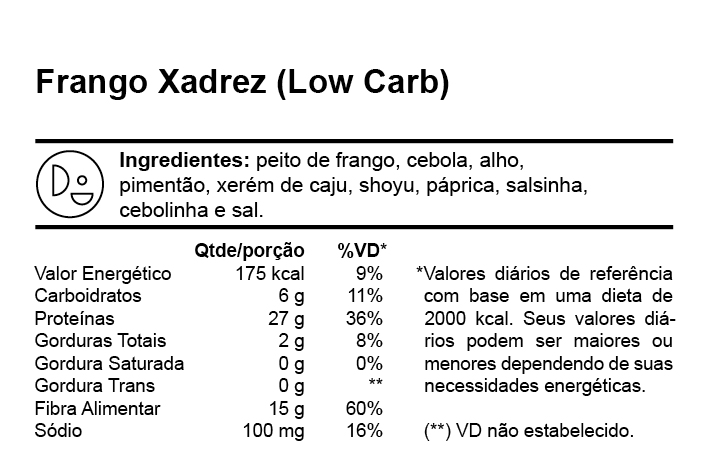 Clássico oriental em versão low carb, preparado com frango, legumes crocantes e xerém de caju. Um prato leve, proteico e cheio de textura.